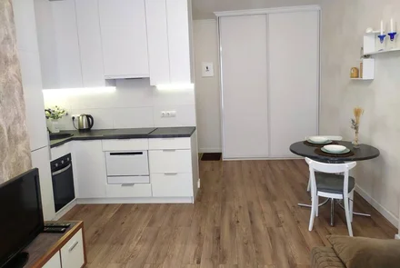 Домашний комфорт и приватность. В вашем распоряжении не просто один гостиничный номер, а полноценная квартира со спальней, кухней и собственной ванной комнатой. Никакого расписания завтраков и назойливого сервиса.