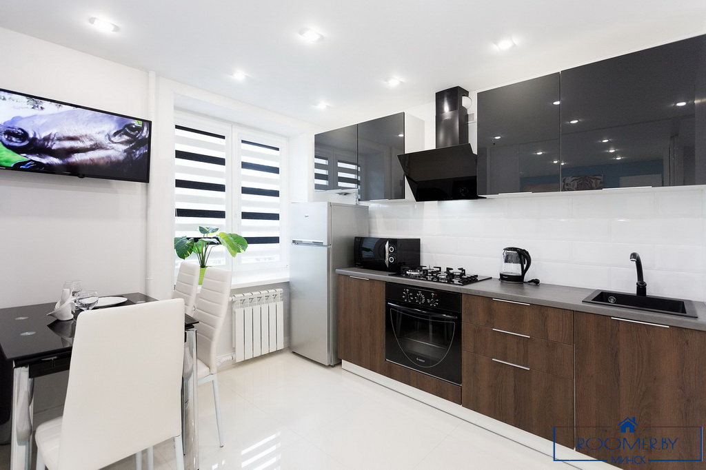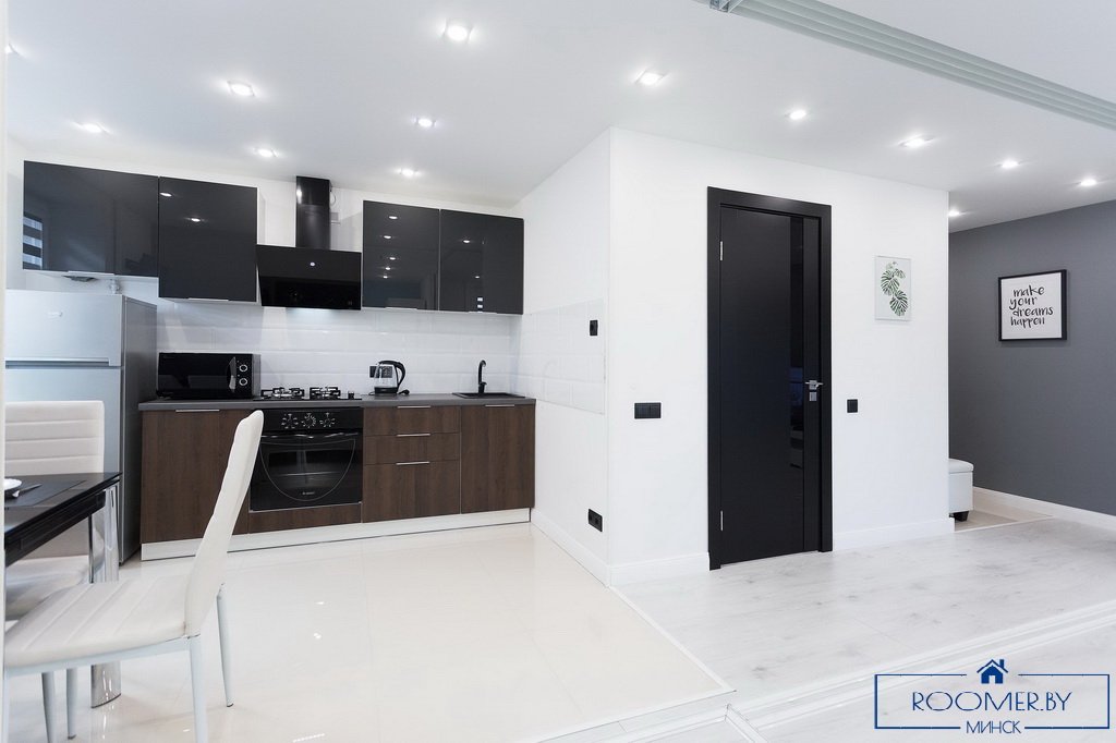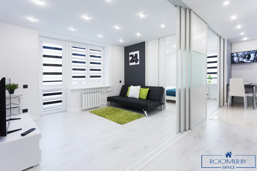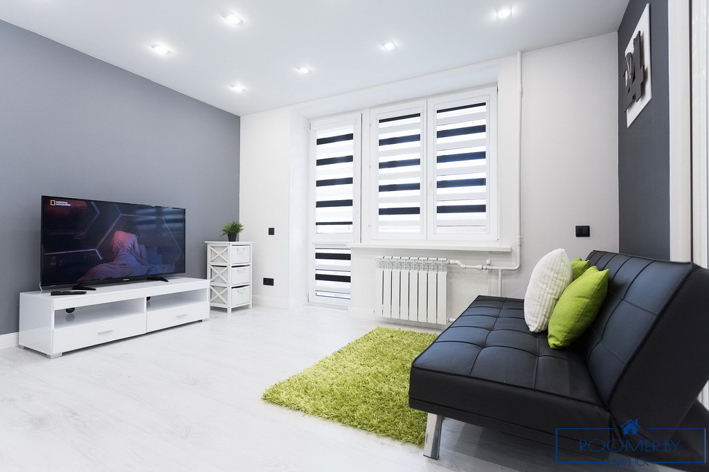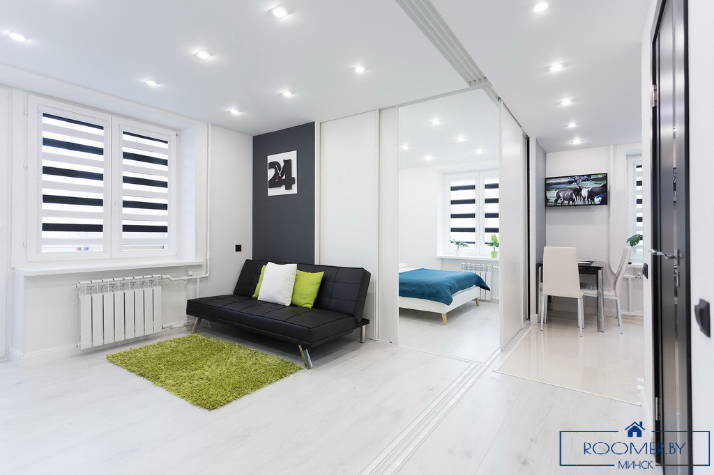 Апартаменты соответствуют гостиничным стандартам: белоснежное постельное белье из сатина в полоску, махровые халаты и тапочки, премиальная косметика Rumah, зубные щетки с пастой, бритвенный и швейный набор.