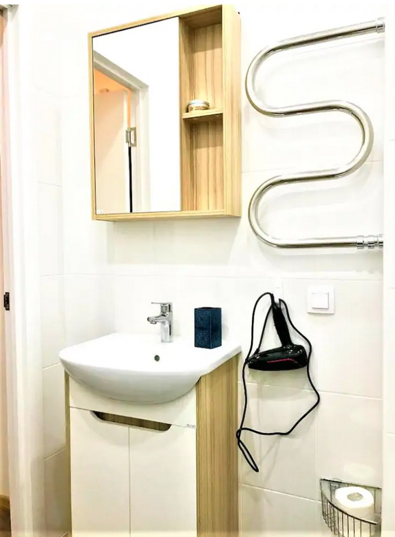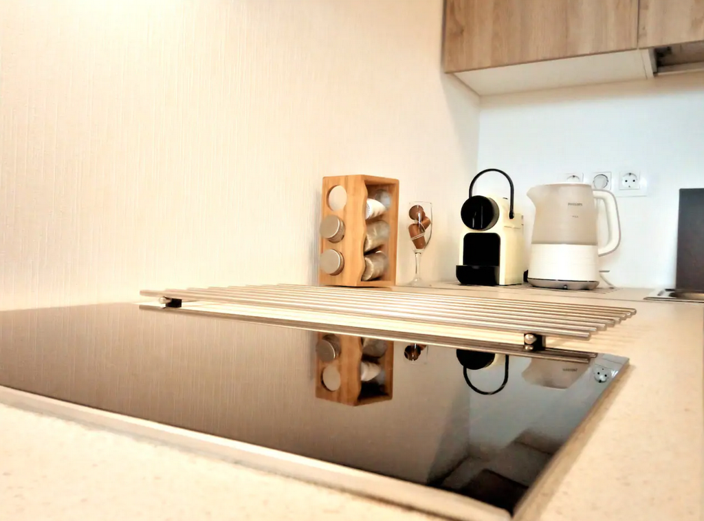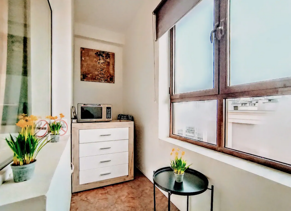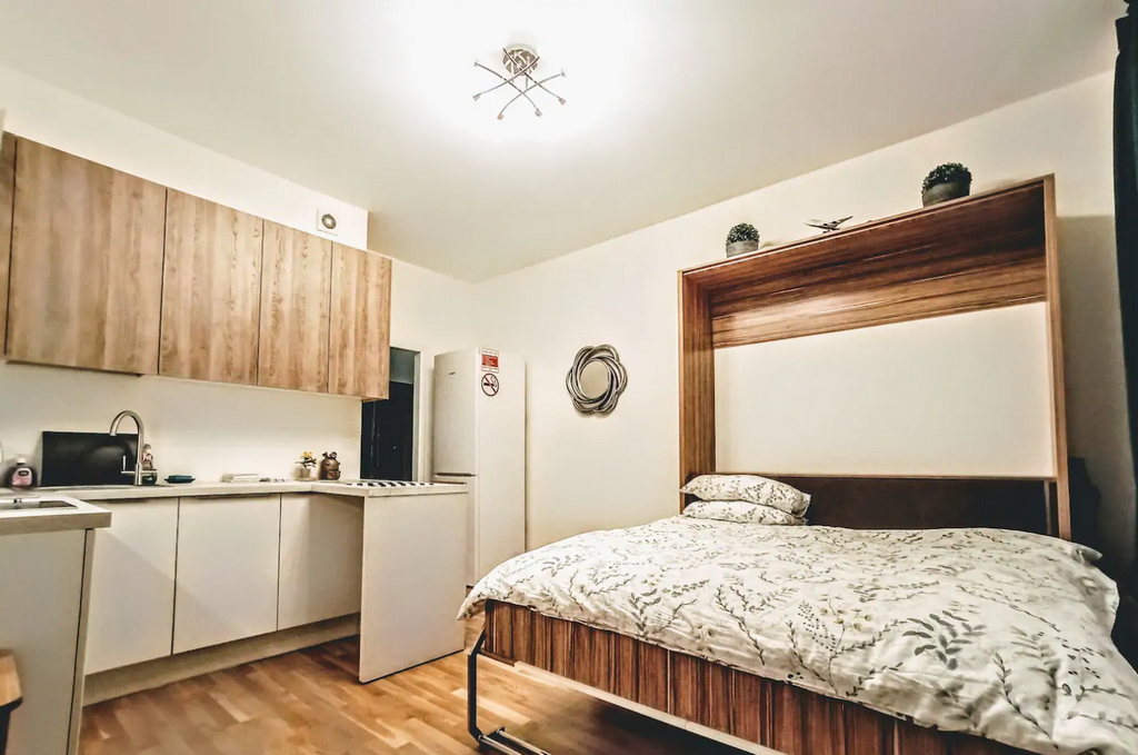 Neat one-room apartment for 1-2 guests with a spacious bed and a kitchenette. The apartment is equipped with all necessary equipment for long-term living.