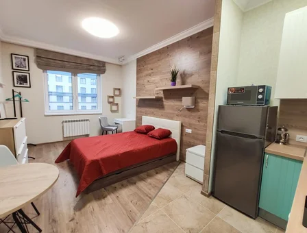 A small studio apartment is located near the Chelyuskintsev Park metro station. All necessary household appliances and electronics are available for a comfortable stay of 1-2 people for a long time. Modern design and decoration.