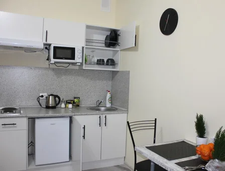 A neat, bright studio apartment with 2 beds. Ideal for short-term stays of 1-2 people. It is equipped with a kitchenette with all necessary household appliances and electronics. Good transport interchange.