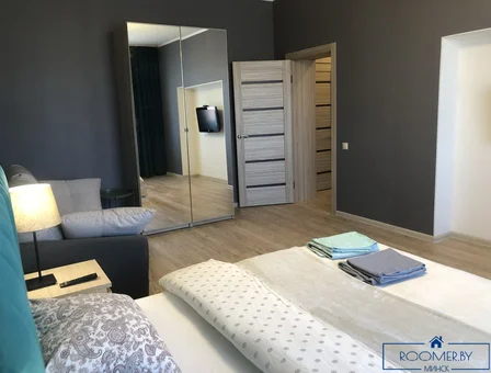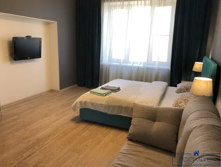 Nice apartment with one room, equipped with a large double bed and a sofa. It can accommodate 4 people per day and by the hour. The modern kitchen is equipped with all necessary equipment and household appliances.