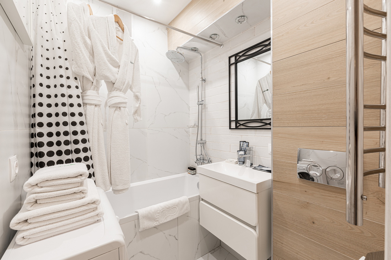 The apartment is very clean - this is supervised by maids with experience in 5-star hotels Marriot, Crown Plaza, Beijing. Everything is working properly, thanks to the attentive work of the head of the household. Towels, bathrobes and bed linen are washed in a professional laundry room. The apartments meet hotel standards: snow-white striped satin bed linen, terry bathrobes and slippers, premium Rumah cosmetics, toothbrushes with toothpaste, shaving and sewing kit. I will be glad to see you among my guests)
