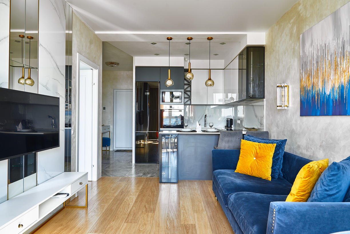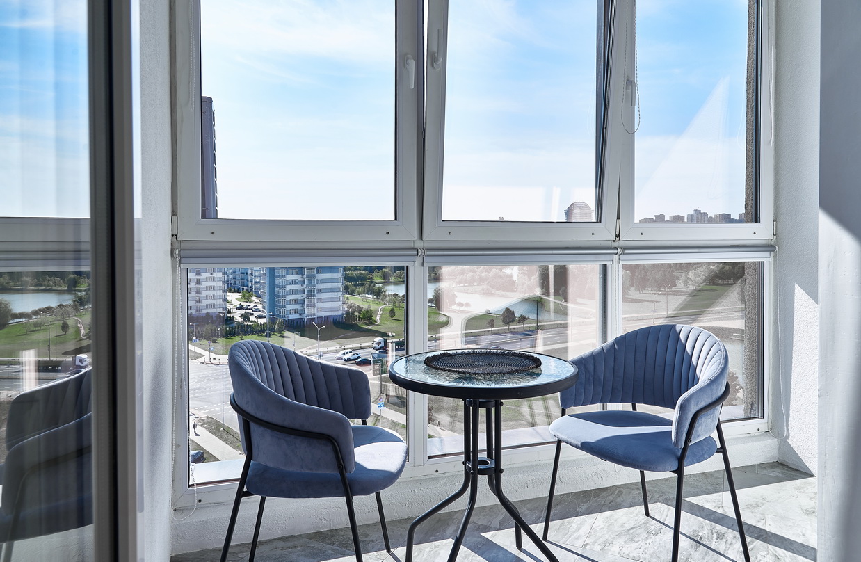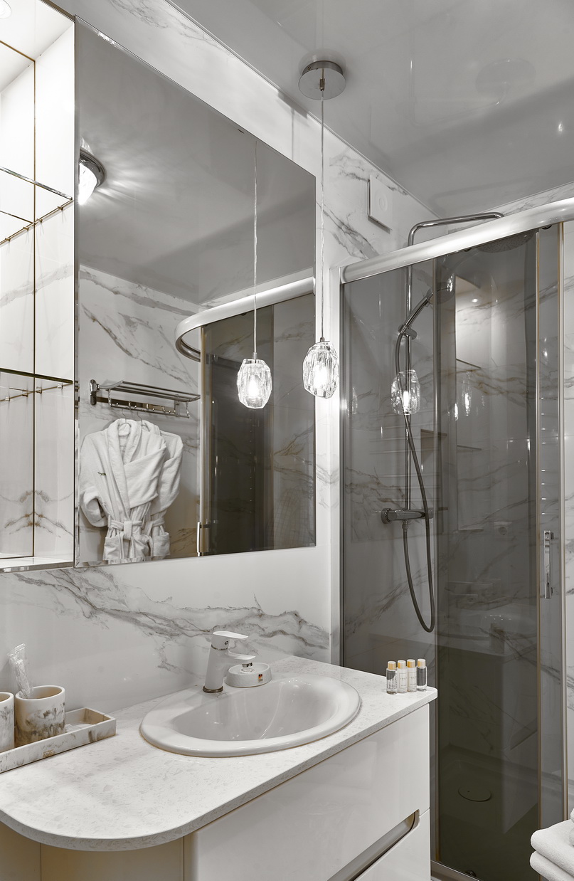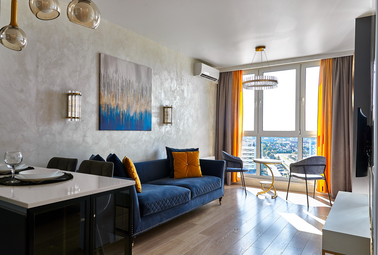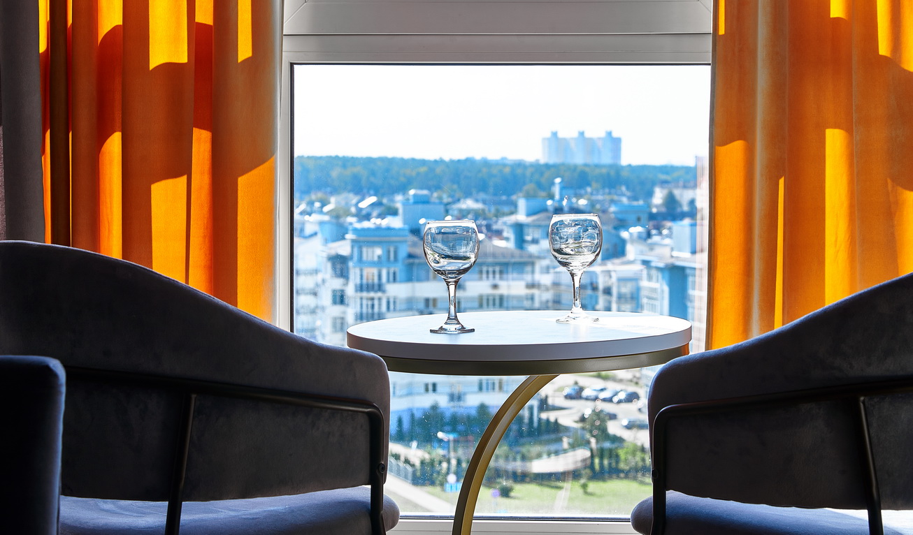 The apartments meet hotel standards: snow-white striped satin bed linen, terry dressing gowns and slippers, premium Rumah cosmetics, toothbrushes with paste, shaving and sewing kit.The apartment is designed to accommodate th