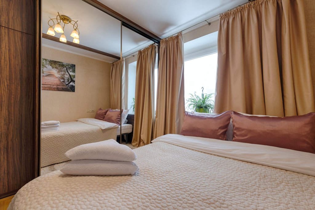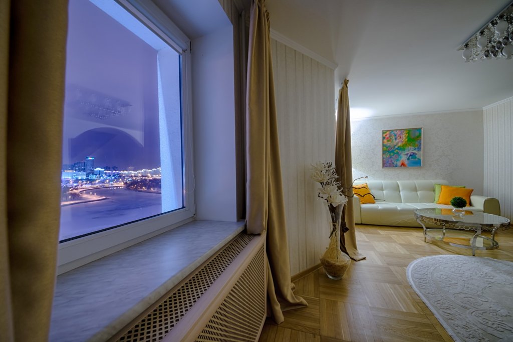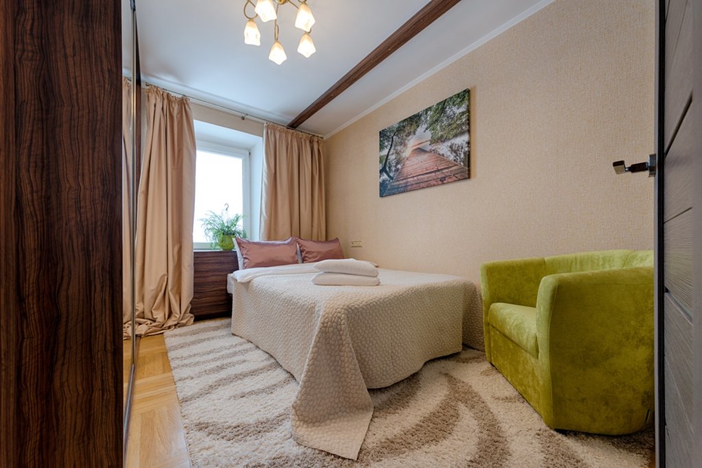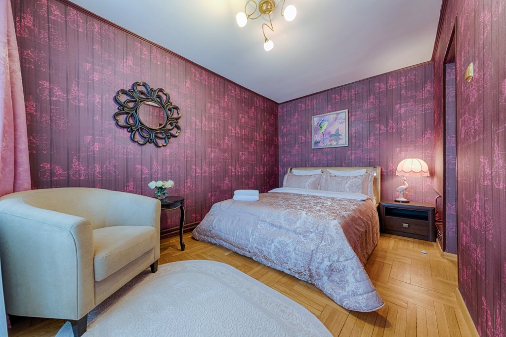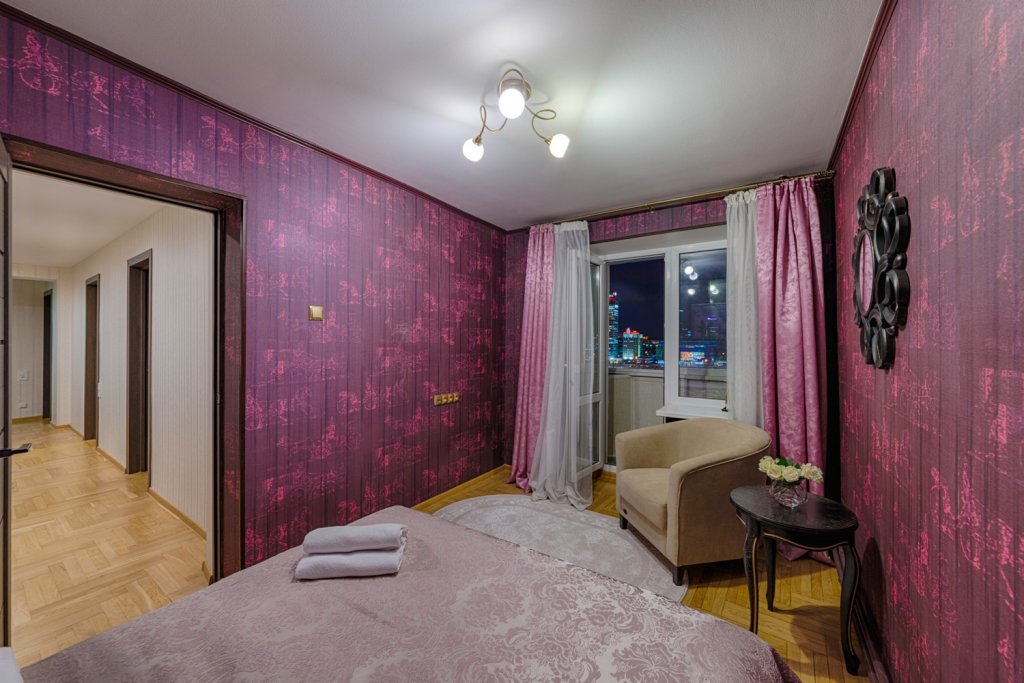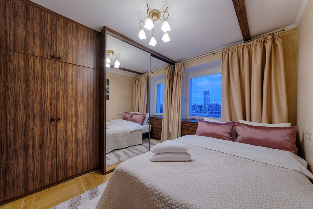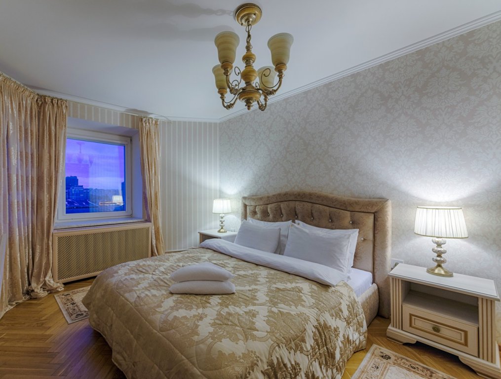 Spacious two-level five-bedroom apartment in the historical center of the city, near the metro station "Nemiga". The apartment has all the necessary furniture and appliances for a comfortable stay: 4 separate bedrooms, each with a double bed, sofa, electric kettle, hairdryer, bathroom accessories: shampoo, gel shower, toilet paper, terry towels, white satin bed linen. The apartment has two separate bathrooms, two balconies with stunning views of the Svisloch river, free Wi-Fi. There is free parking in the courtyard of the house. The apartment can comfortably accommodate up to 10 people.
