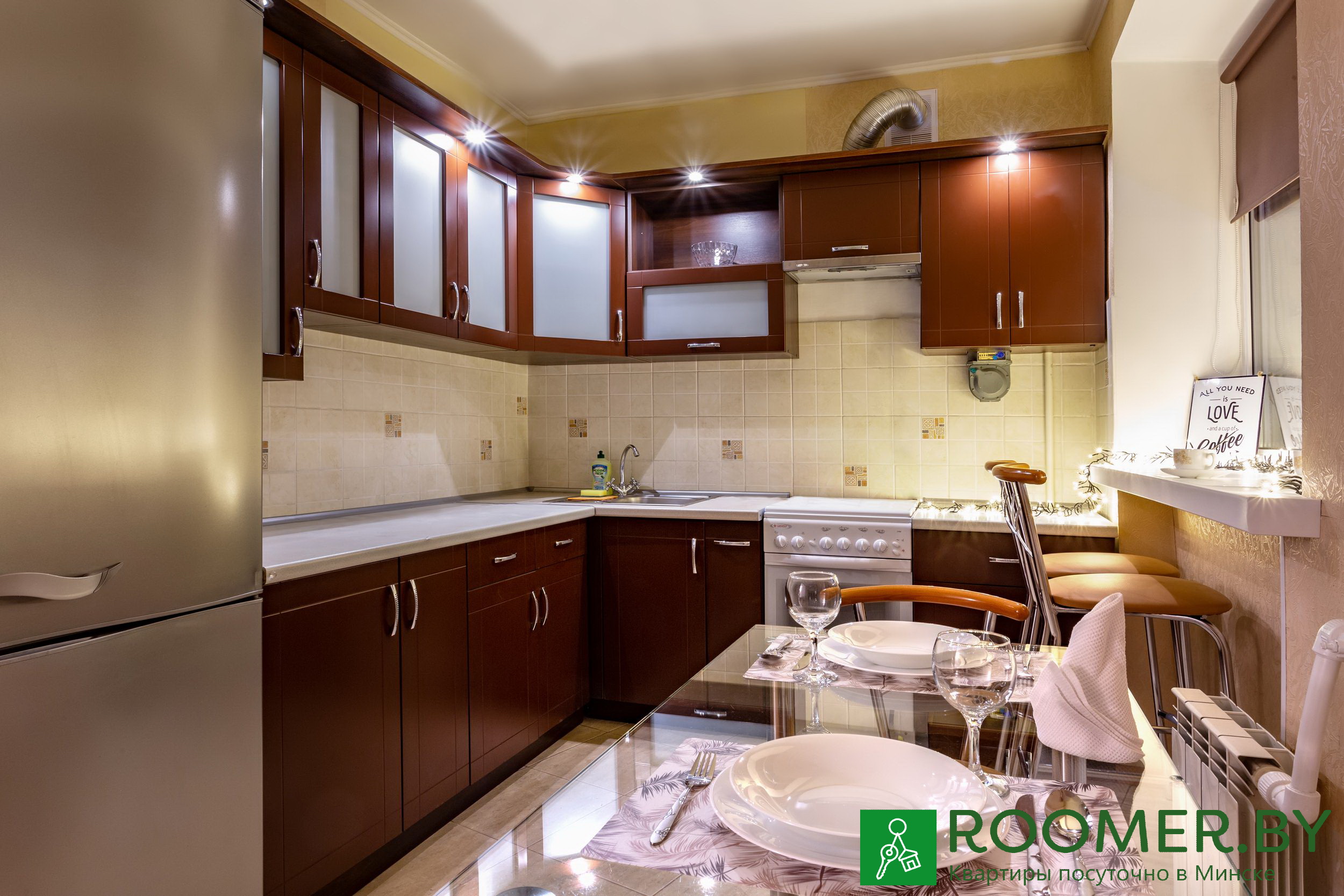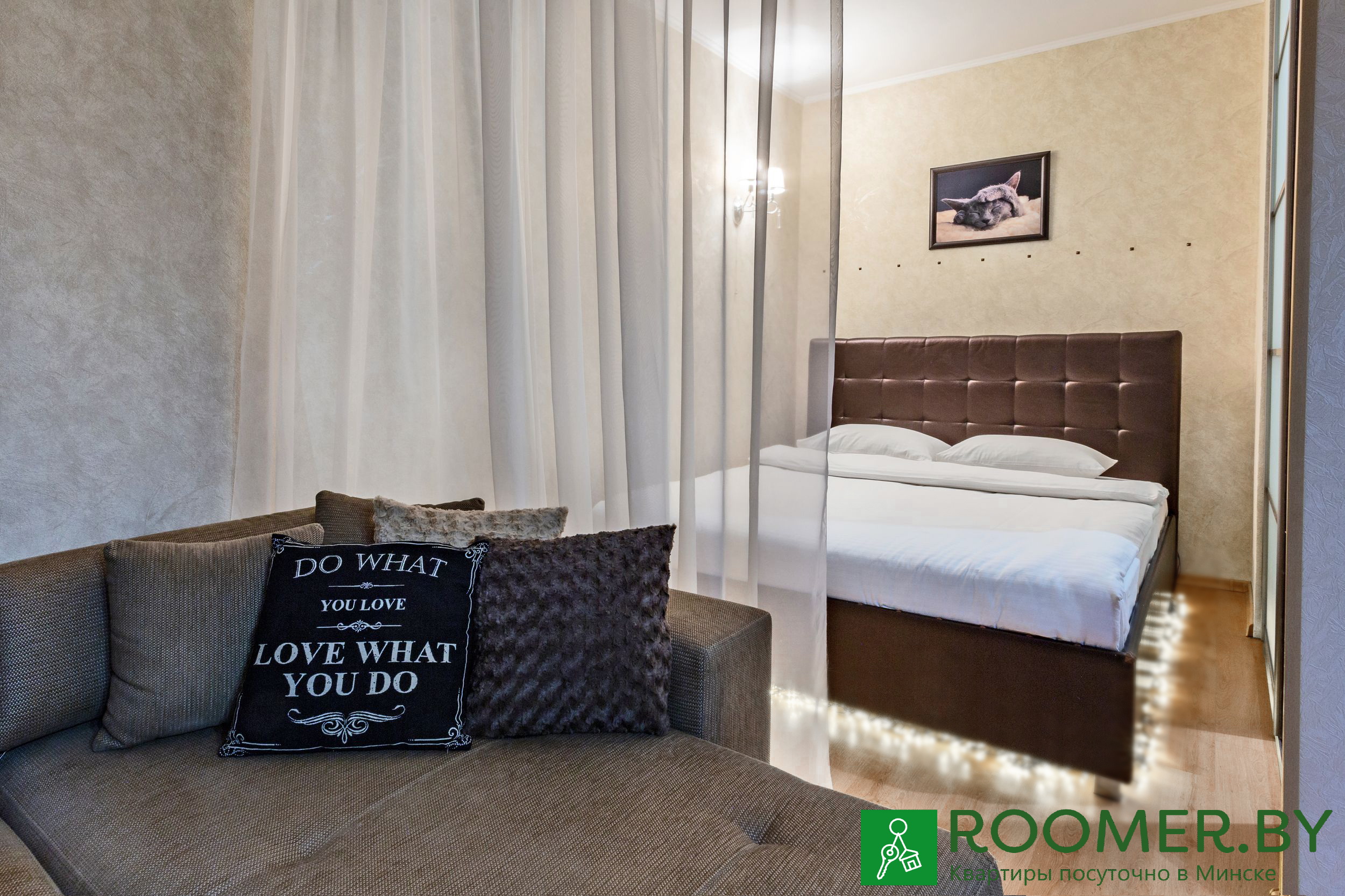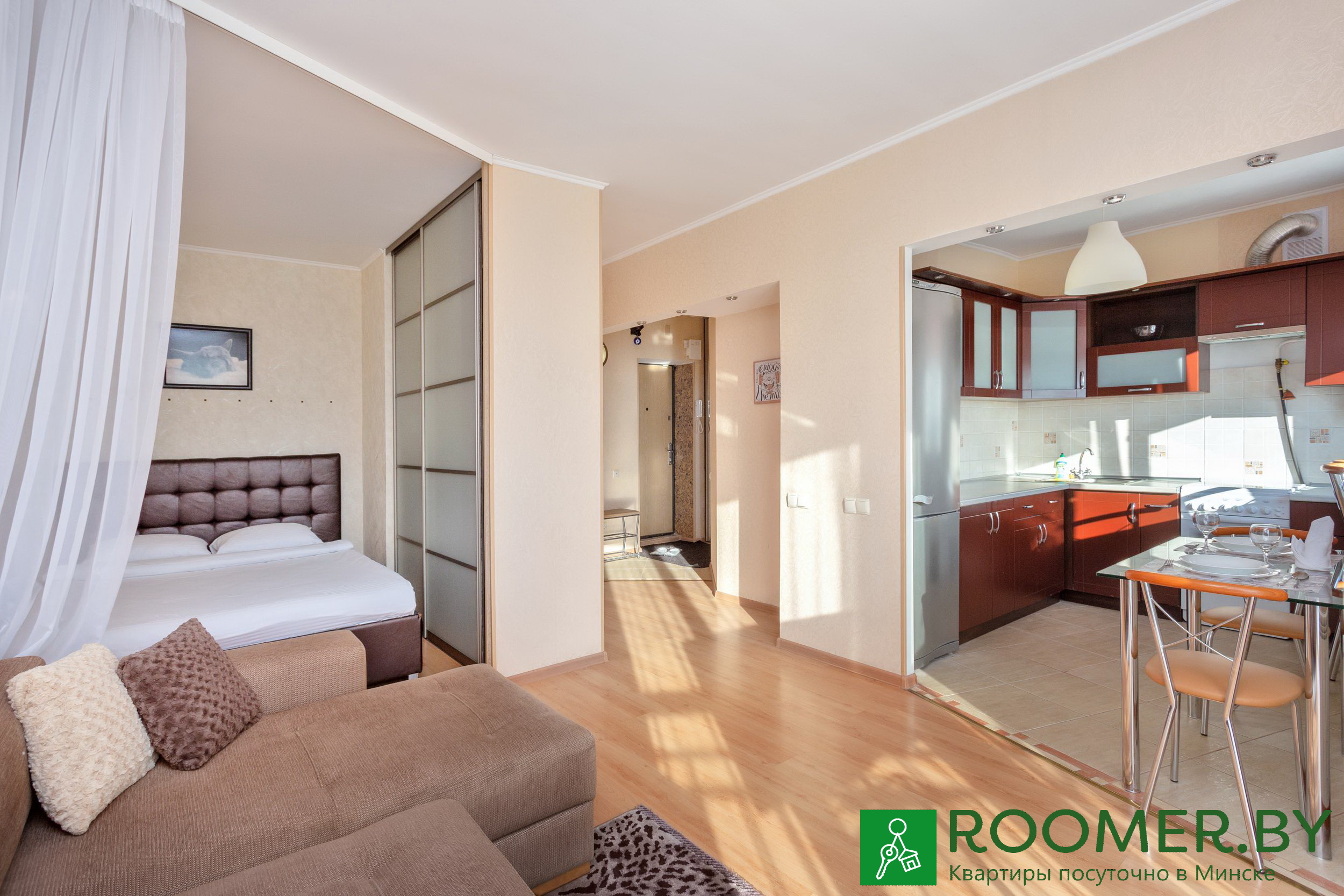 The apartments meet hotel standards: snow-white striped satin bed linen, terry dressing gowns and slippers, premium Rumah cosmetics, toothbrushes with paste, shaving and sewing kit.I will be glad to see you among my guests)