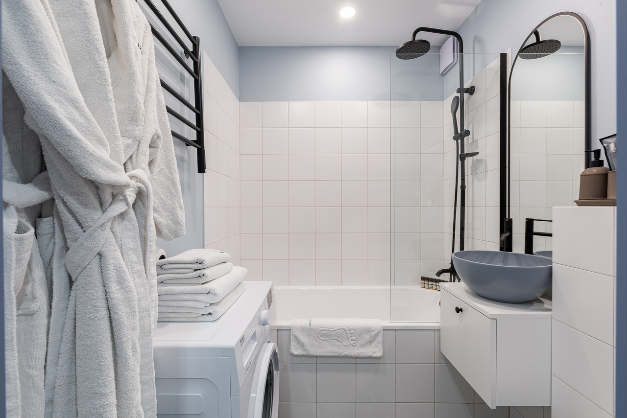 The apartments meet hotel standards: snow-white striped satin bed linen, terry dressing gowns and slippers, premium Rumah cosmetics, toothbrushes with paste, shaving and sewing kit.I will be glad to see you among my guests)